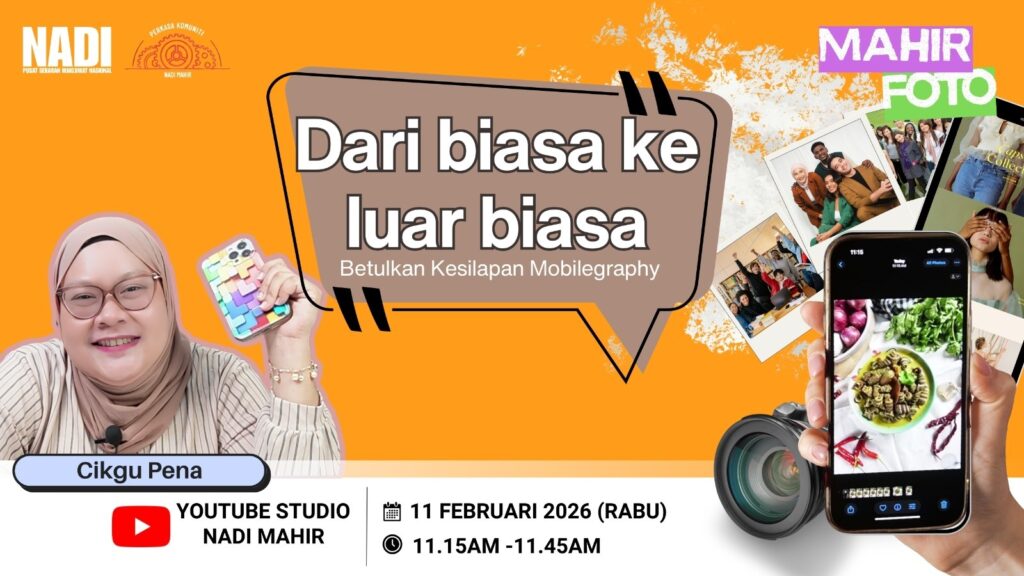 Jom sertai Mahir Short Learning Series: Mahir Foto βDARI BIASA KE LUAR BIASA”. Pelajari kesilapan yang sering dilakukan serta teknik penambahbaikan bagi meningkatkan kualiti hasil visual anda dengan lebih profesional.