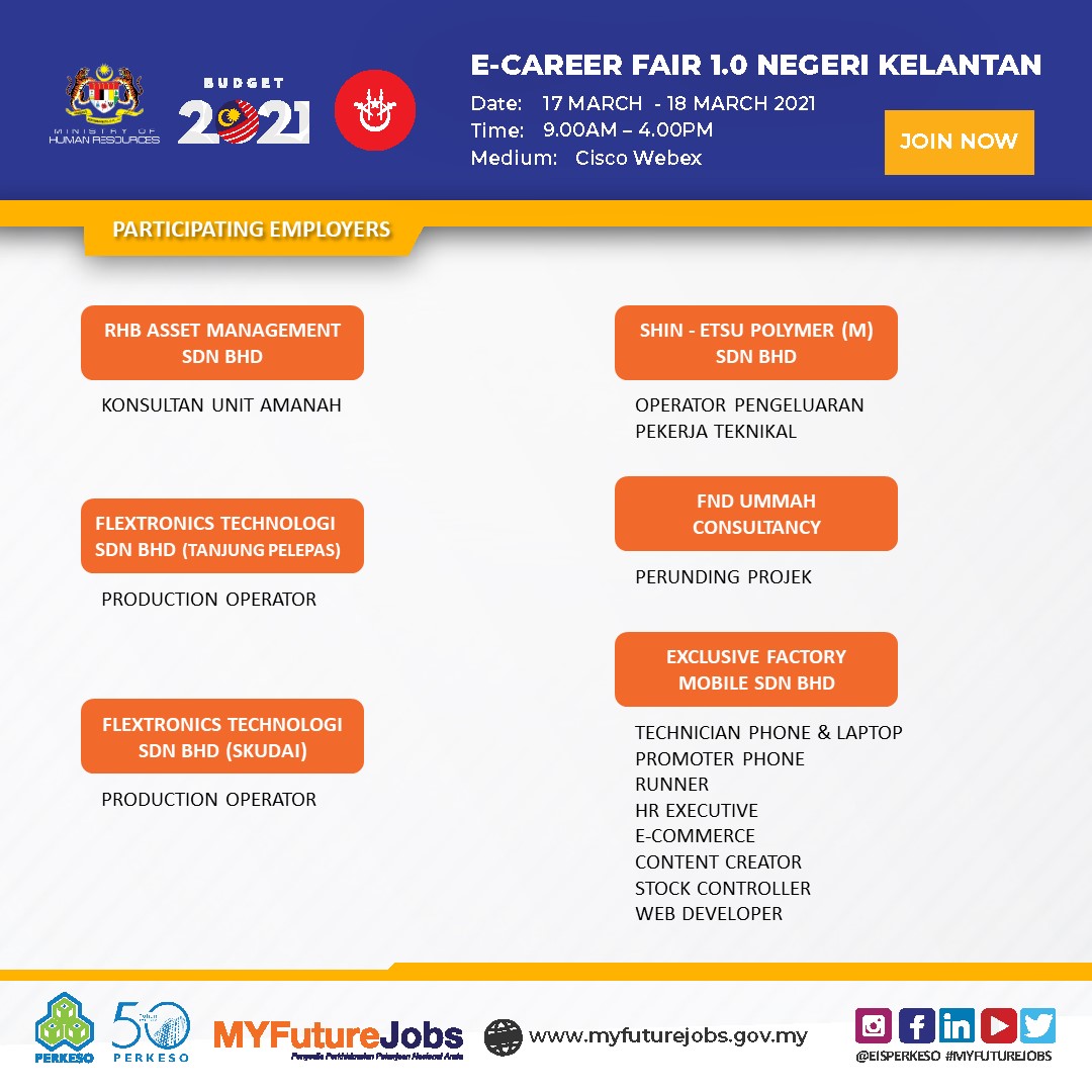 PROGRAM ”E-CAREER FAIR 1.0″ ANJURAN CAWANGAN SISTEM INSURANS PEKERJAAN PEJABAT PERKESO NEGERI KELANTAN